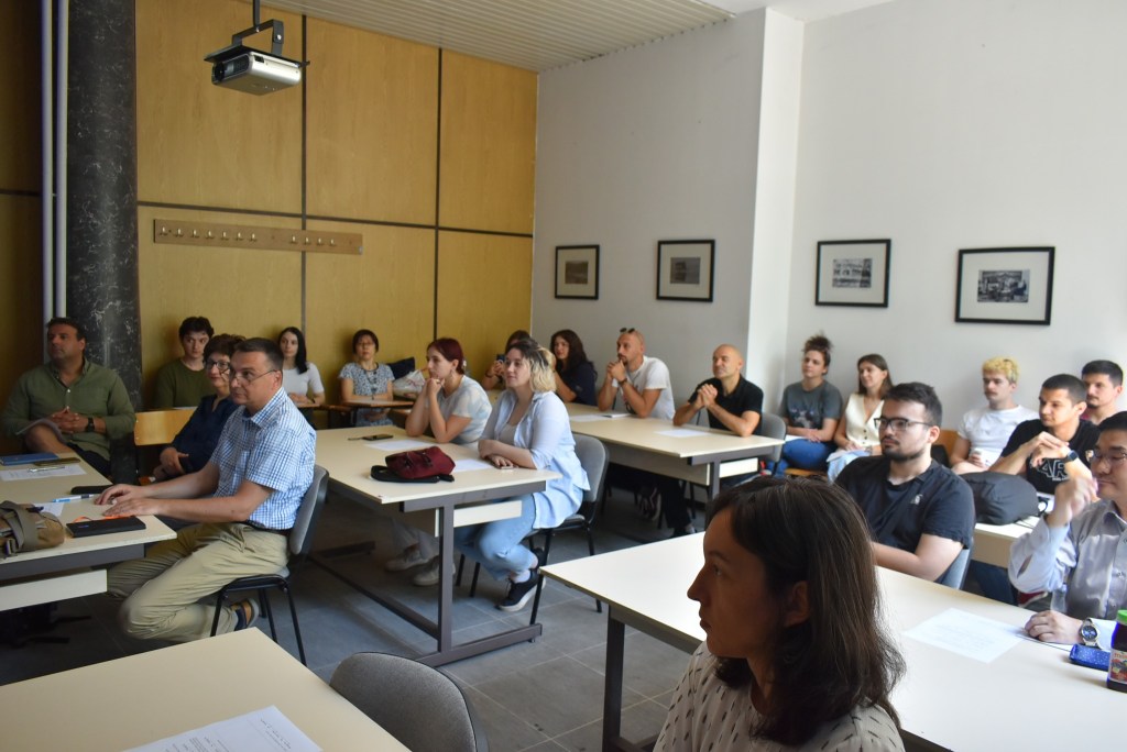 Амбасадорот на Јапонија, г-дин Оцука Казуја, го отвори предавањето со краток говор на македонски.